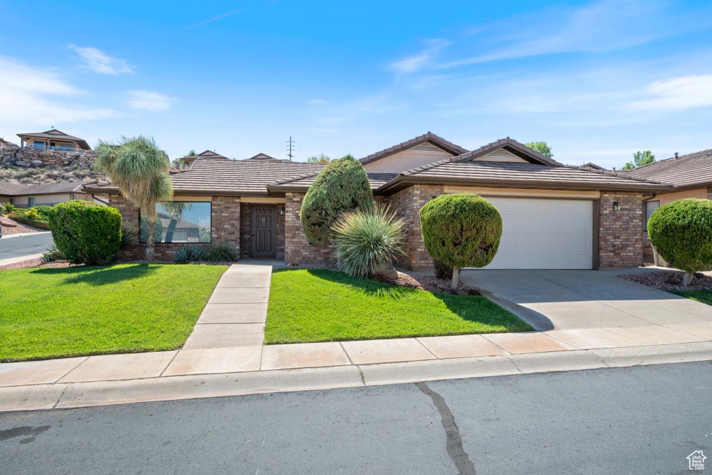 This move-in-ready home, located near Southgate Golf Club, sits on a desirable corner lot and has been meticulously maintained as a vacation/second home-never rented. Recent updates include new carpet, fresh paint, and more, making it feel fresh without the hassle of renovations. Inside, vaulted ceilings create a light and open feel, while the 3-bedroom, 2-bath layout offers just the right amount of space. The covered back patio is perfect for relaxing in the shade, and the HOA handles all yard care-so your weekends stay free. You're also just a short stroll from the neighborhood pool, tennis courts, and pickleball area. With quick access to everything St. George has to offer, this home is easy to fall in love with.