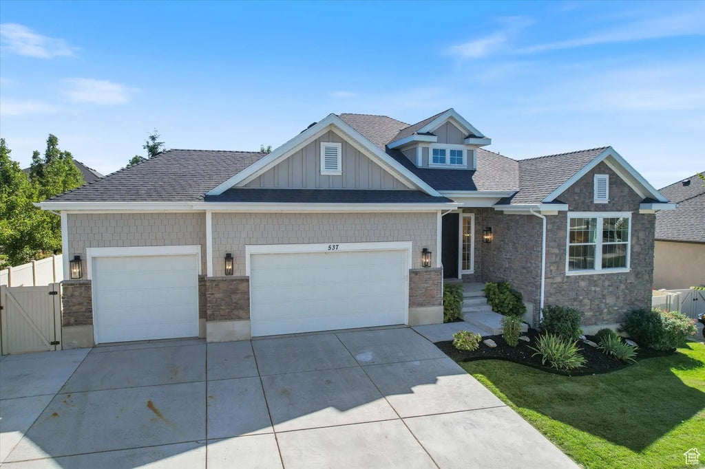 OPEN HOUSE THIS WEEKEND! Saturday Oct 4th 1-3pm. Located in the desirable Ivory Ridge community, this home combines the perfect location with fresh upgrades. Six bedrooms, five bathrooms, a dedicated office, and large storage room provide lots of flexibility for family needs. The main floor features 11 foot ceilings, beautiful white oak floors, 8 foot tall doors, and two bedrooms each with ensuites. Downstairs offers roomy 9 foot ceilings, a second set of laundry connections, and lots of storage. This home features a gorgeous new kitchen with luxury appliances including a 36" SKS gas range, nearly silent SKS dishwasher, and Scotsman pebble ice maker. The kitchen features thoughtful details such as hideaway mixer lifter, reverse osmosis water, and a large walk-in pantry. The cabinetry has soft close doors and drawers and is topped with beautiful Taj Mahal quartz countertops. The designer lighting and upgraded hardware provide an elegant feel throughout the home. The large primary suite feels like a vacation retreat and features moody lighting, large dual shower, free-standing soaking tub, and towel warmer. Automated roller shades, smart lights, smart thermostat, and smart locks can all be automated to adjust the house as the day turns to night. Two new 50 gallon water heaters ensure hot water for everyone during high demand times. The three car garage has epoxy floors, bright lighting, and comes with the shelving and cabinets shown in the listing pictures. The third car bay is a pull through garage with a large concrete pad behind the garage. Additionally, the garage has a 50 amp 220V connection for an electric vehicle charger or welder. Next to the third car garage, is a large RV pad perfect for storing extra vehicles or toys. The yard is low maintenance with automated sprinklers and includes an in-ground trampoline, basketball hoop, fire pit, and large patio. The Ivory Ridge Splash pad is just a short walk away. Close to the freeway and the newly announced Target and just two blocks from Skyridge High School. Square footage figures are provided as a courtesy estimate only and were obtained from the Utah County Tax Records. Buyer is advised to obtain an independent measurement.