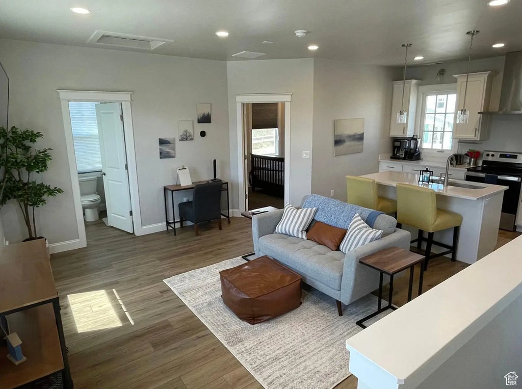This is the best of living in Utah. This cottage is one bedroom and one bath with 730 sq ft of open space concept living. The opportunity to interact and enjoy life indoors is beautiful in this home. The windows through out the Cottage give light and an opportunity to gaze into what you can do outdoors. The kitchen is ample with upgraded countertops and center Isle with dishwasher next to the sink. The washer and dryer are in the unit. You can park in your own attached garage where you find a provided bike to go around the trails and a beach chair to go right outside to the beach. Yes, this cottage is less than a minute to the local Daybreak beach. When you live here you are part of the daybreak community and have HOA privileges to the lake, facilities and activities. It comes furnished if needed or without the furniture. All Utilities included with a flat cost of $150. Including high speed internet. $1650 security deposit required. $500 due up on signing the contract. Do you want to see a video tour? Text me and I will send it.