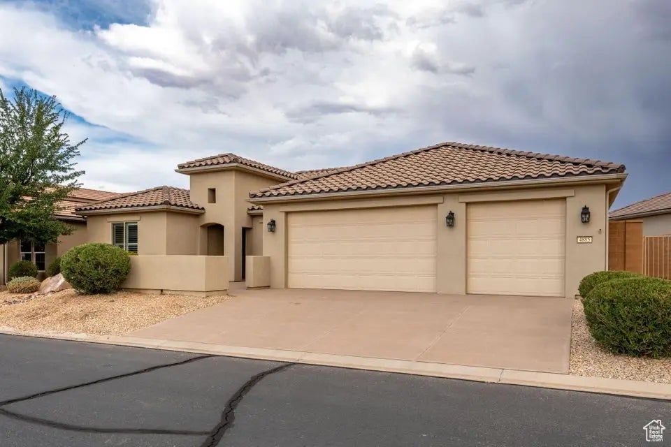 Welcome to this beautiful single-level home in Sun River, a 55+ community. This property includes a spacious 3-car garage with a tandem bay large enough to accommodate up to 4 cars, complete with epoxy floors and the golf cart is included! Inside, freshly painted walls, trim, and doors create a clean and welcoming feel. The kitchen is equipped with granite countertops, an island, and built-in stainless-steel appliances, with the refrigerator, washer, and dryer all included. The open floor plan features a cozy stone entertainment center with a gas fireplace and natural light. The primary suite offers private backyard access, a walk-in closet, and plantation shutters. Outdoors, enjoy a fully fenced and landscaped yard with a built-in BBQ, perfect for entertaining. This 2-bedroom, 2-bathroom home also includes a dedicated office, blending comfort and convenience in one perfect package.