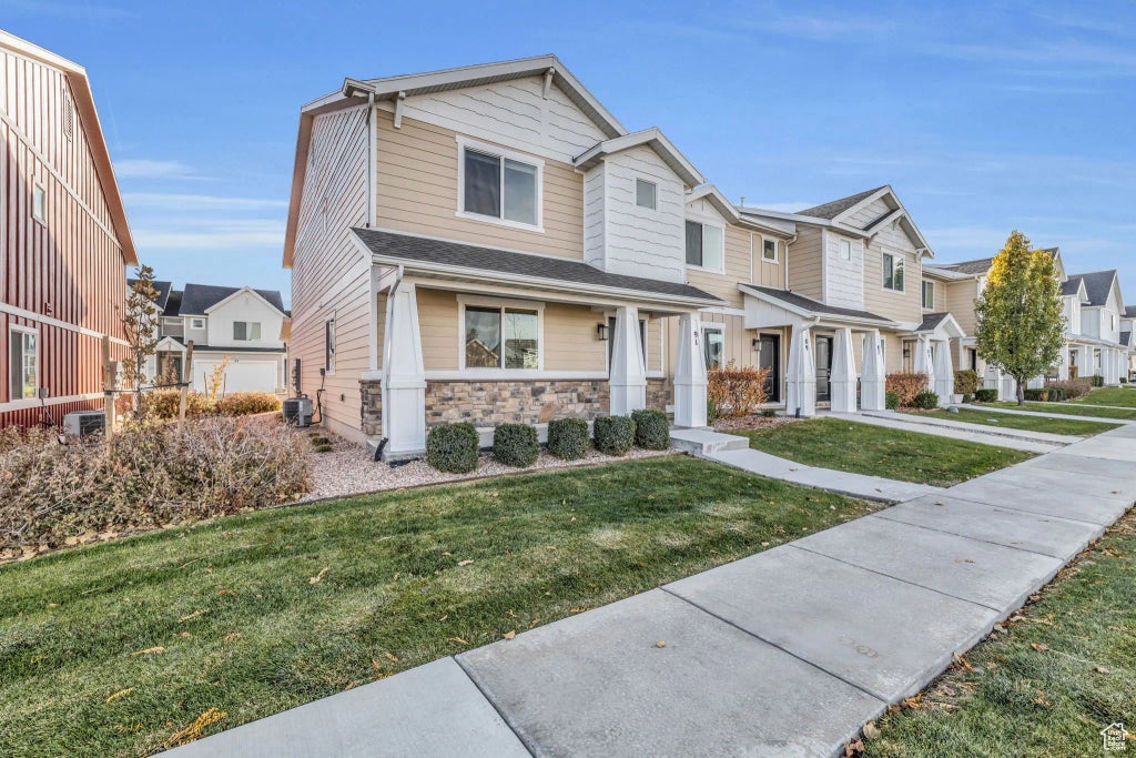 This beautifully designed townhome, built in 2016, offers contemporary living with an inviting open floor plan perfect for both relaxation and entertaining. Featuring an abundance of natural light, the spacious living and dining areas seamlessly connect to a modern kitchen. Enjoy the comfort of three well-appointed bedrooms, including a luxurious master suite complete with an en-suite bathroom and generous closet space. Take advantage of the wonderful community amenities just steps from your door! Dive into the cool waters of the community pool during hot summer days or take leisurely strolls through nearby parks and trails, ideal for walking, jogging, or biking. As an added bonus, this property is eligible for an assumable VA loan, making it a perfect opportunity for eligible buyers seeking an affordable mortgage option. Square footage figures are provided as a courtesy estimate only and were obtained from Utah county. Buyer is advised to obtain an independent