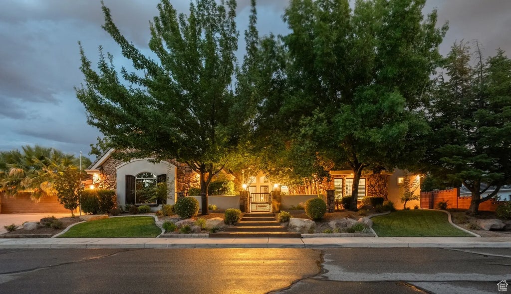 Beautiful home located in the quiet and secluded Cox Landing neighborhood near the heart of St George. The gourmet kitchen features high-end custom cabinetry, thick granite countertops, a gas cooktop with a wood hood and pot filler, and wall ovens. The spacious primary suite offers a roll-in steam shower with double shower heads, jetted tub, and a large walk-in closet with a stackable washer/dryer. The studio ADU has an exterior door, vaulted ceilings, a kitchenette, full bath, and a walk-in closet. Enjoy multiple gathering spaces, including a large basement family room with a kitchenette. The backyard features a saltwater pool with fountain, hot tub, outdoor kitchen with BBQ and TV, gas fire pit, and 2 covered patios surrounded by palm trees and mature landscaping.