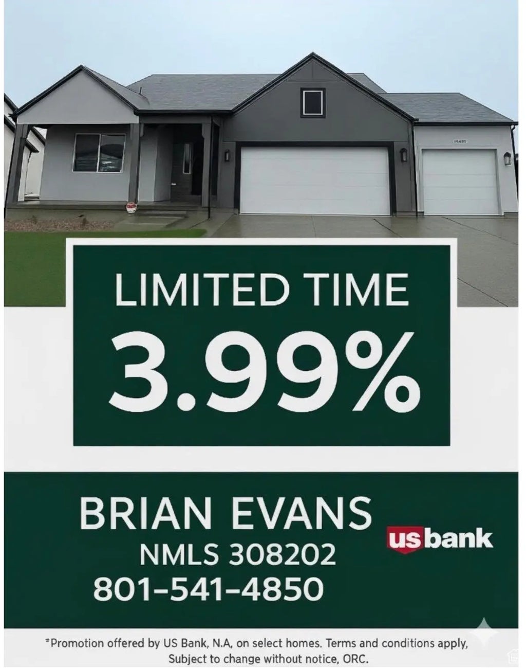 ASK HOW WE CAN GET YOU A LOW MORTGAGE RATE!! YOU'VE FOUND IT! DREAM HOME DREAM LOCATION *MOVE IN READY!!!** Within 5 minutes to the Riverdale Family shopping center, Schneiter's Riverside Golf course and 5 minutes to the I-15 ad I-84 corridor. Stunning Summit plan with 3 car garage. The main floor of this open floor plan includes a HUGE kitchen with gorgeous soft close cabinets with all the storage you will ever need, Modern quartz, Stainless steel appliances, a beautiful mud room, a walk in pantry, and an office with double glass doors office perfect to work from home. The Summit features three large bedrooms, three large bathrooms, massive loft and a central laundry room and mud room. The master bathroom features a soaker tub and a separate walk-in shower. This large home plan is sure to accommodate all your family gatherings and entertaining needs! This is a parade of homes worthy home! Call today to schedule a private tour! ** Address of the Community - 5368 South 1050 West, Riverdale, UT, 84405 PROMO:15K towards closing costs and rate buy-downs when using our preferred lender. 13K using an outside lender!!! **MODEL HOME: 1037 W Motor Vu Drive, Riverdale, UT 84405**