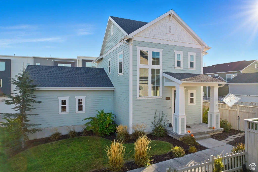 Rare fully fenced private backyard! Located in Daybreak's Highland Park Village, this immaculate home features an open floor plan with large windows, a bright kitchen with quartz countertops, gas range, stainless-steel appliances (fridge included), and an oversized island with barstool seating. Enjoy premier Daybreak amenities including high-speed internet, community rec center, two pools, splash pads, parks, BMX jumps, pump track, sports courts, and an outdoor amphitheater. The dining area opens to a covered patio and private yard. Primary suite includes a walk-in closet and ensuite bath with granite double vanity, soaking tub, and separate shower. Finished basement offers a spacious family room with a large 4th bedroom & full bathroom. All within walking distance to schools, trax, and the new Salt Lake Bees stadium and district entertainment center.